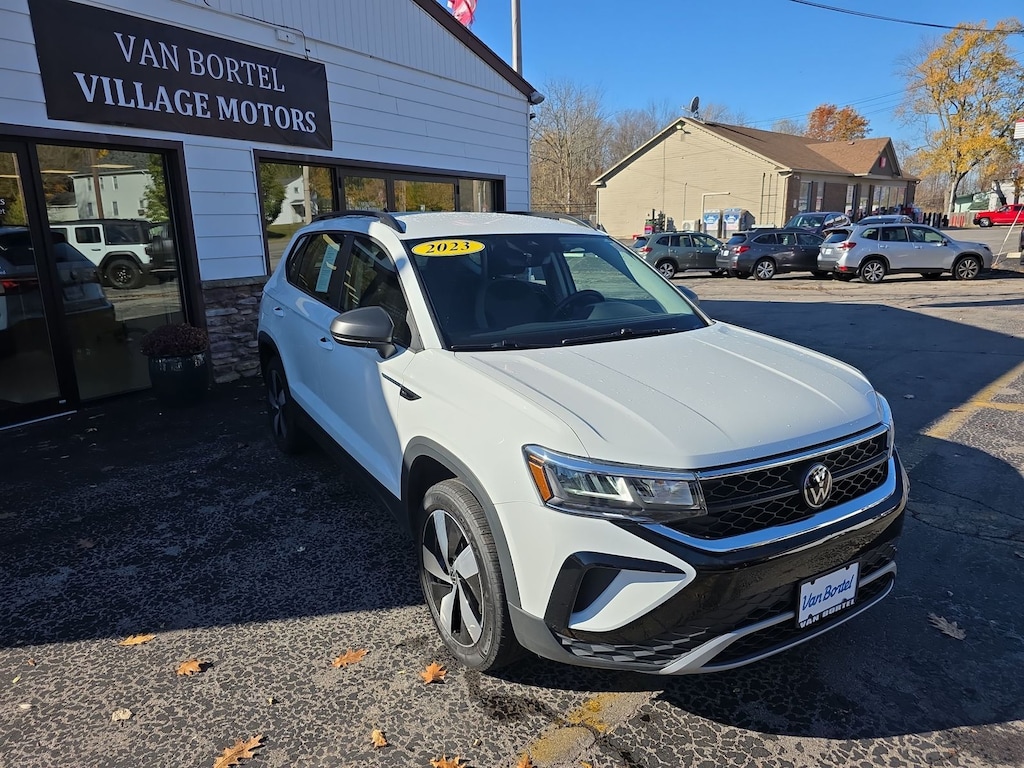 !! VAN BORTEL SERVICE COMPLETED A FRESH ENGINE OIL CHANGE, NEW WIPERS, NEW CABIN AIR FILTER, NEW ENGINE AIR FILTER. AS WELL AS NEW FRONT AND REAR BRAKE PADS AND ROTORS. 4 BRAND NEW TIRES!! ----------------------------------------------------------------------------------------------------------------------------------------------------------------------------------------------------------------------------------------------------------CARFAX One-Owner. Clean CARFAX. 2023 Volkswagen Taos 1.5T S White AWD 7-Speed DSG Automatic with Tiptronic 1.5L I4 Turbocharged DOHC 16V LEV3-SULEV30 158hp